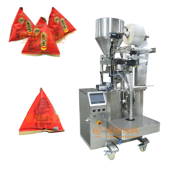 相信很多零食愛好者都知道,瓜子是我們休閑時(shí)光的必備品,有小袋裝撕口背封類型的、有三角包裝類型的,可以說是五花八門,包裝類型種類多。我們見到的小三角包包裝瓜子也是新型袋裝瓜子食品來的,最近幾年這種包裝方式也很新鮮,受到廣大消費(fèi)的青睞。如果要包裝三角包類型的瓜子,可以使用LD-320A三角包瓜子包裝機(jī)進(jìn)行包裝。