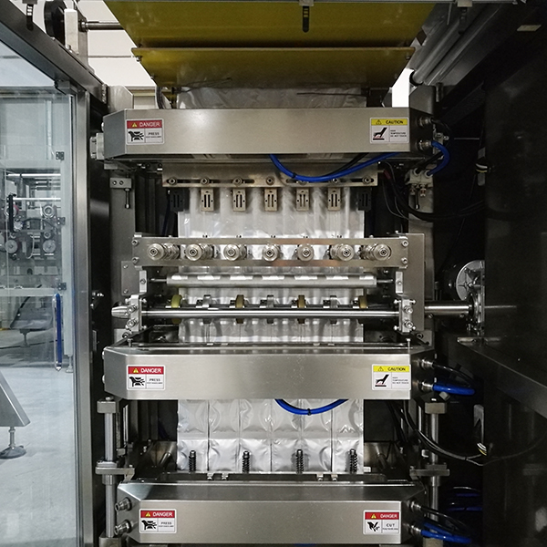 該系列多列四邊封顆粒包裝機(jī)采用先進(jìn)的PLC加光電控制系統(tǒng),可自動完成計(jì)量、制袋、填充、封合、切斷、打印生產(chǎn)日期、切易撕口等工序。