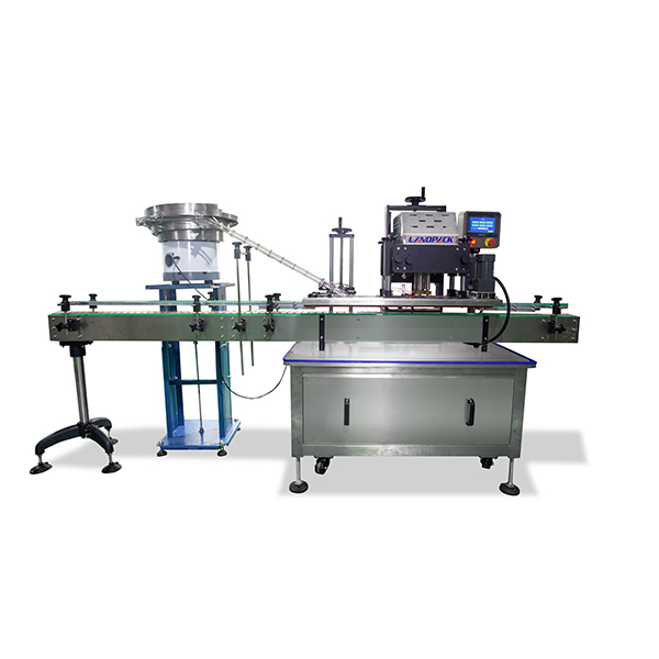 該自動灌裝線是由灌裝機(jī)+理瓶收瓶機(jī)+四輪旋蓋機(jī)+貼標(biāo)機(jī)組成