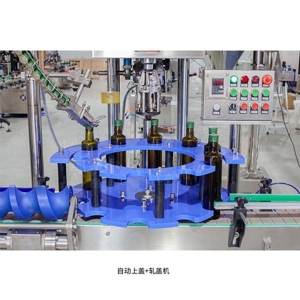 該自動灌裝生產(chǎn)線主要用于流動性好的液體,其黏度范圍在1-100cp內(nèi),可用于食品、醫(yī)藥等行業(yè),如食用油,口服液,紅酒等等。該生產(chǎn)線使用的封口機為扎蓋機,瓶子與蓋子一對一現(xiàn)配螺紋,使封口效果更好,密封性更強;人工套膠帽后配收縮機,使膠帽貼實光滑,美觀無皺;最后進行貼標(biāo)。該機具有適用廣泛、自動化程度高、灌裝精度高、生產(chǎn)效率高、操作簡單、使用壽命長等特點。