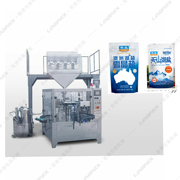 小袋食鹽包裝其適用范圍廣泛,可用于紙塑復合、塑塑復合、鋁塑復合、PE復合等,包材損耗低,使用的是預制好的包裝袋,包裝袋圖案美觀,封口品質(zhì)好,從而提高了產(chǎn)品檔次;