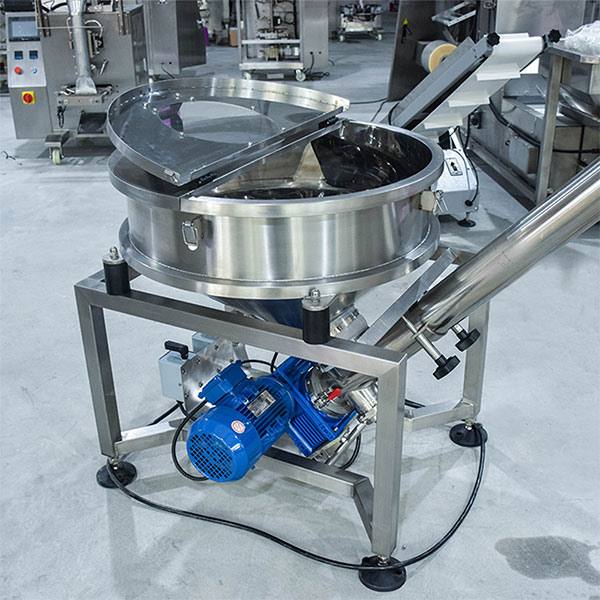 這款四邊封咖啡包裝機(jī)是根據(jù)客戶的需求進(jìn)行定制開發(fā)出來。在原有320的主機(jī)上面把料斗改成的三角形式。同樣是采用螺桿下料,而且這臺咖啡包裝機(jī)的上料方式是采用螺桿上料系統(tǒng),工作人員只要將咖啡之類的粉末倒入儲料斗里面,然后通過電機(jī)驅(qū)動螺桿,直接把物料輸送到三角料斗里面,再次通過螺桿計量稱重、下料、封口、成品輸出等一些工作流程完成物料的包裝。