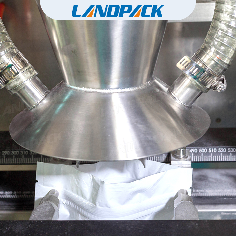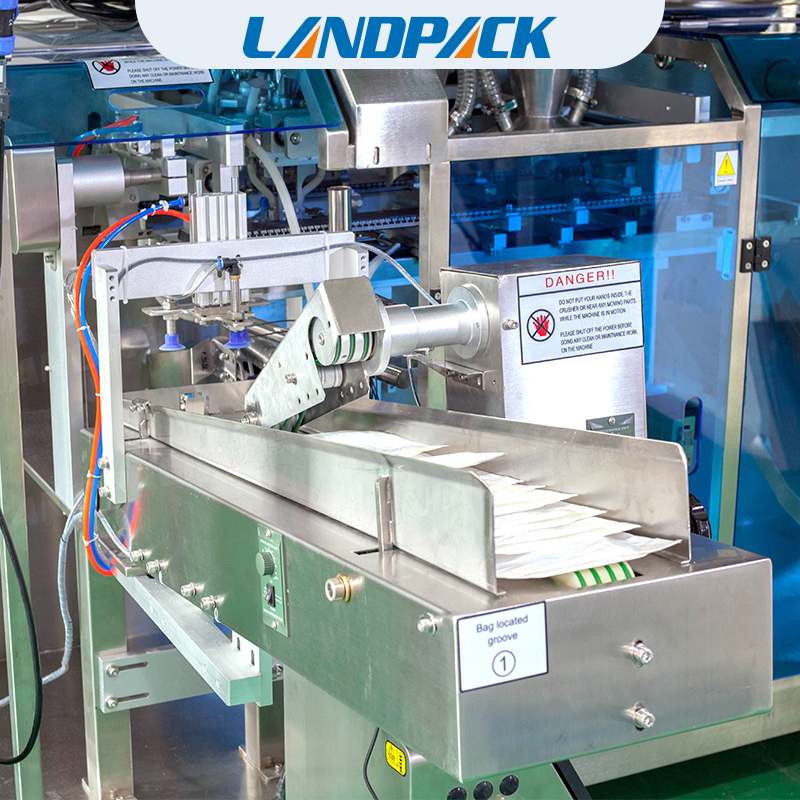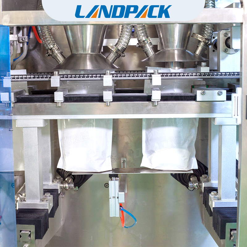 調(diào)味品混合包裝機(jī)它代替了手工包裝,操作人員只要將做好的一個(gè)一個(gè)的袋子,一次性將幾百個(gè)袋子放在設(shè)備的取袋部,設(shè)備機(jī)械手會(huì)自動(dòng)的取袋、打印日期、開(kāi)袋、給計(jì)量裝置信號(hào)計(jì)量并落料、封口、輸出。