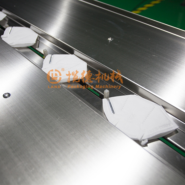 該機的操作流程是:操作人員手動把需要包裝的一次性口罩、平面口罩、N95口罩、KN95口罩放入托盤傳送帶當(dāng)中,然后傳送帶把口罩輸送到包裝機里面,然后配合漩渦氣泵在袋子封口的時候進行抽取氣體,經(jīng)過卷膜、制袋、封口等一系列環(huán)節(jié)完成包裝過程